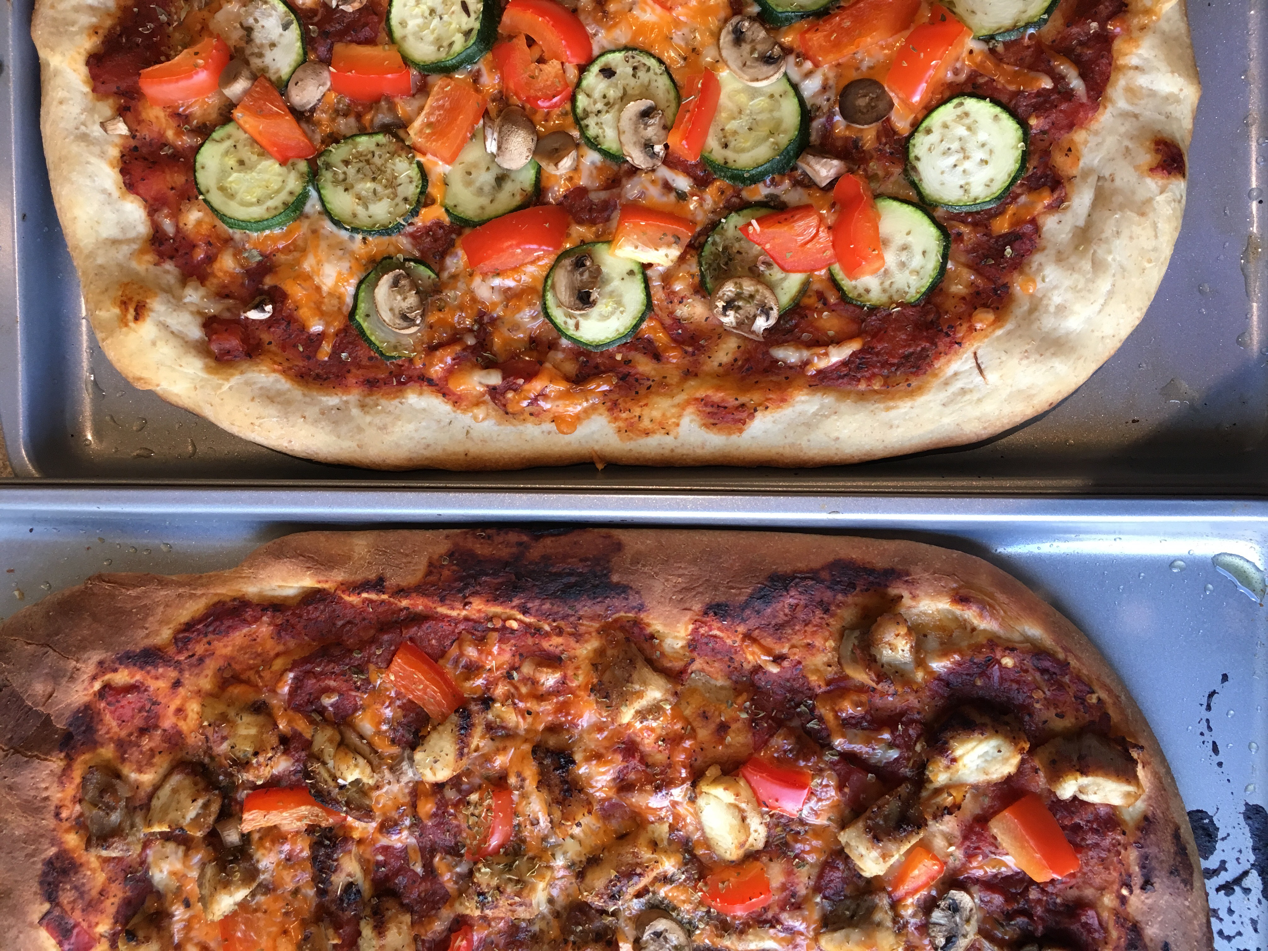 - For pizza 3: omit the cheese and instead add the zucchini, peppers, tomatoes and mushrooms!